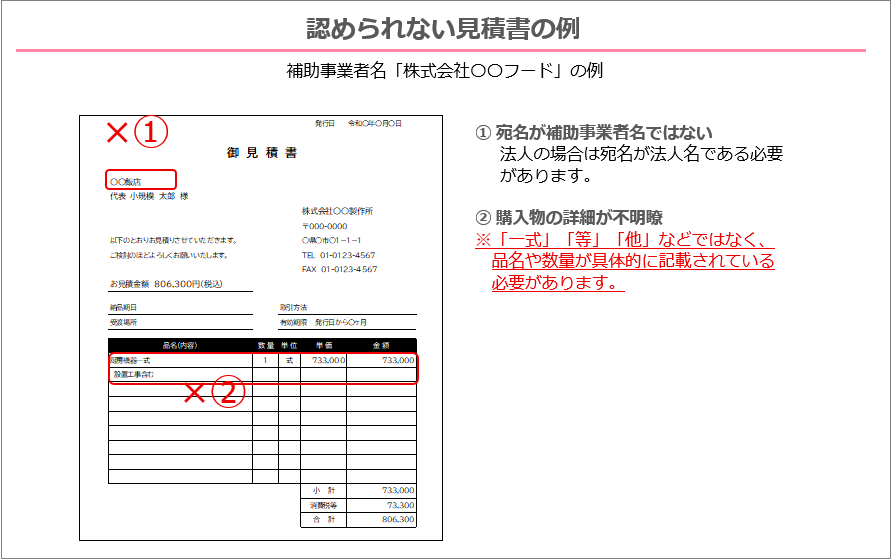 応募時に提出された経費明細表(様式3)の補助対象経費金額と採択後のご提出いただく見積書等の金額は一致している必要があります。