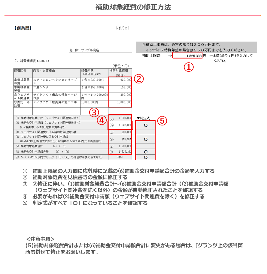 取得した見積書等の金額が、様式3の補助対象経費金額と異なる場合には、様式3を修正し、再提出をお願いいたします。