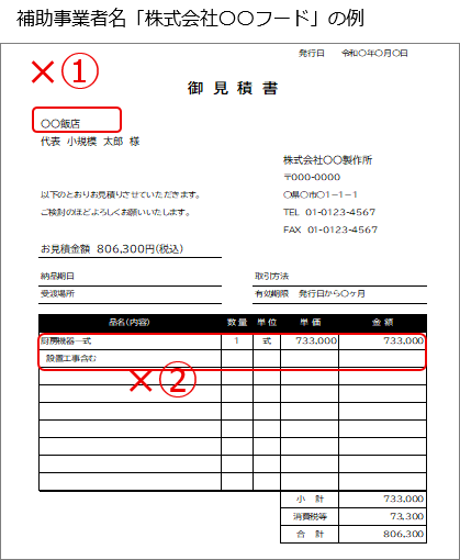 応募時に提出された様式3(経費明細表・Excel)の補助対象経費金額と採択後にご提出いただく見積書等の金額は一致している必要があります。
