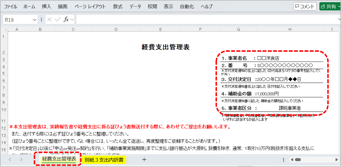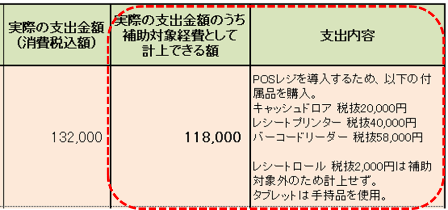 <参考2>支出内訳書の入力箇所