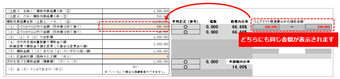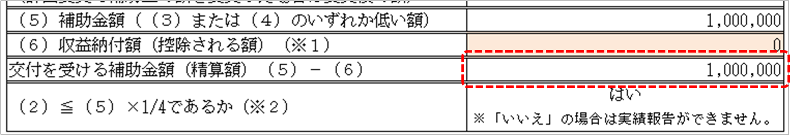 - 「交付を受ける補助金額(精算額)」が自動計算されるので、確認してください。