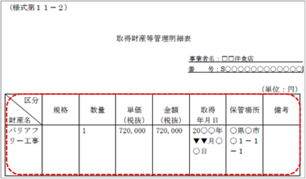 ・「取得年月日」は、納品日や完了日等を入力してください。