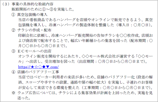 - 単に「〇〇を実施した」という内容で終わるのではなく、販路開拓につなげるために取り組んだ内容を具体的に入力してください。